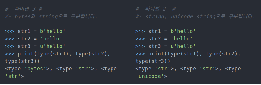 - 파이썬 3부터는 문자열은 다른작업 없이 유니코드의 인코딩 or 디코딩 여부만 판단하면된다.
